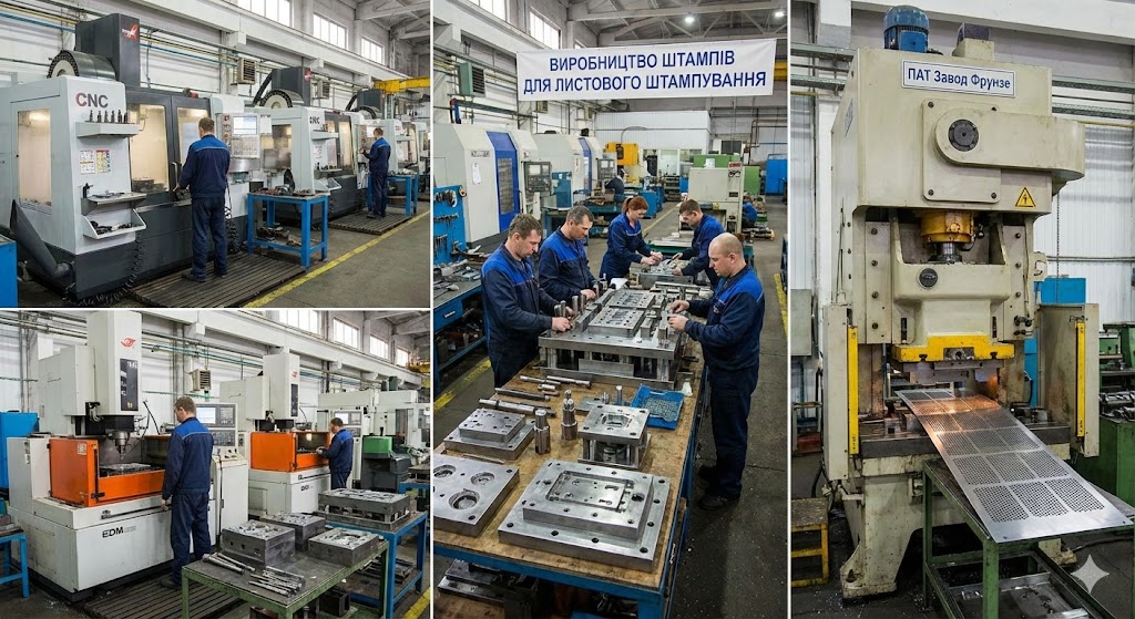 Помимио иззготовления собственной продукции, ПАО "Завод Фрунзе" предоставляет свои услуги производства штампов листовой штамповки: